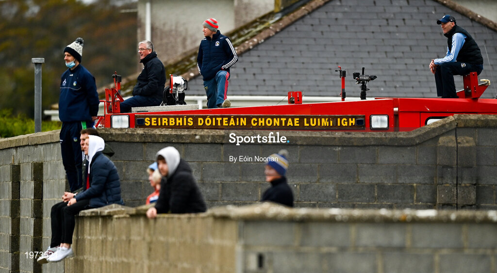 18 October 2020; Supporters watch the match from a fire truck stationed in Rathkeale fire station during the Allianz Football League Division 4 Round 6 match between Limerick and Wexford at Mick Neville Park in Rathkeale, Limerick. Due to ongoing restrictions imposed by the Irish Government to contain the spread of the Coronavirus (Covid-19) pandemic, elite sport is still permitted to take place behind closed doors. Photo by Eóin Noonan/Sportsfile
