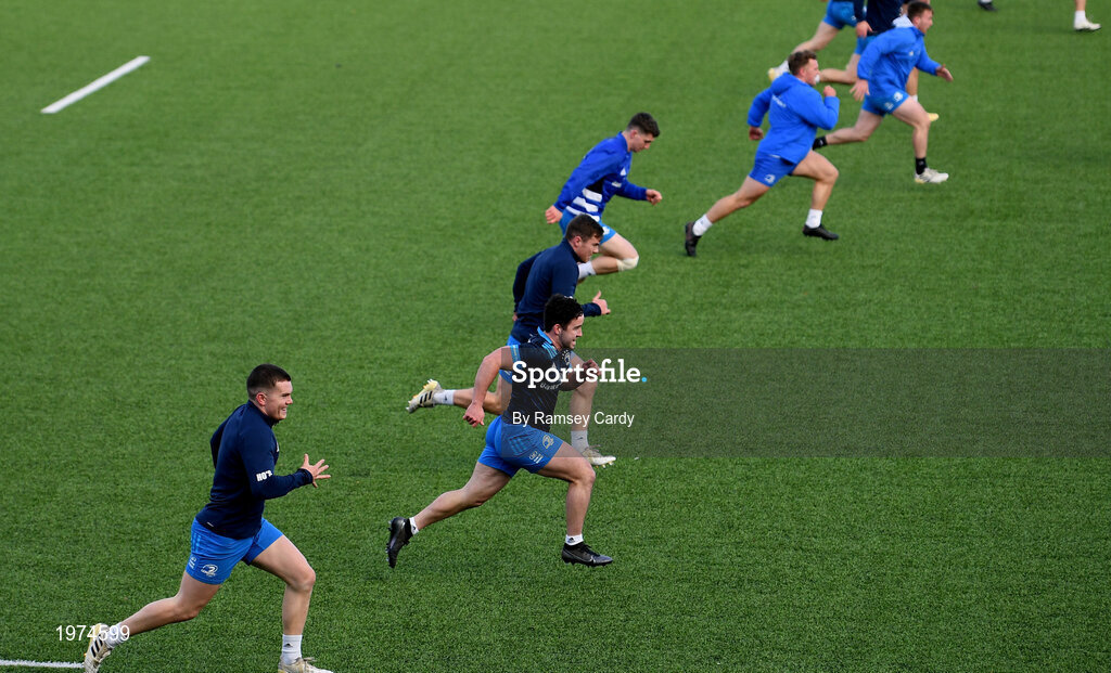 29 December 2020; Hugh O'Sullivan, left, and team-mates during Leinster Rugby squad training at Energia Park in Dublin. Photo by Ramsey Cardy/Sportsfile