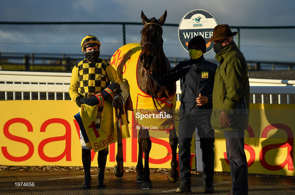 1 January 2021; Jockey Paul Townend, trainer Willie Mullins and Al Boum Photo in the winners enclosure following victory in the Savills New Year's Day Steeplechase at Tramore Racecourse in Waterford. Photo by Seb Daly/Sportsfile