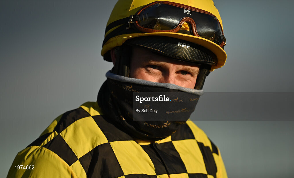 1 January 2021; Jockey Paul Townend prior to the Savills New Year's Day Steeplechase at Tramore Racecourse in Waterford. Photo by Seb Daly/Sportsfile