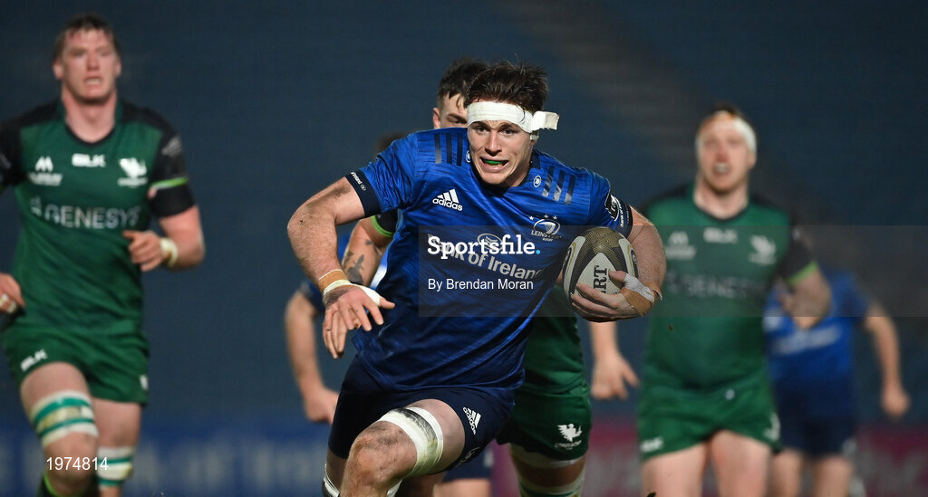 2 January 2021; Ryan Baird of Leinster makes a break during the Guinness PRO14 match between Leinster and Connacht at the RDS Arena in Dublin. Photo by Brendan Moran/Sportsfile