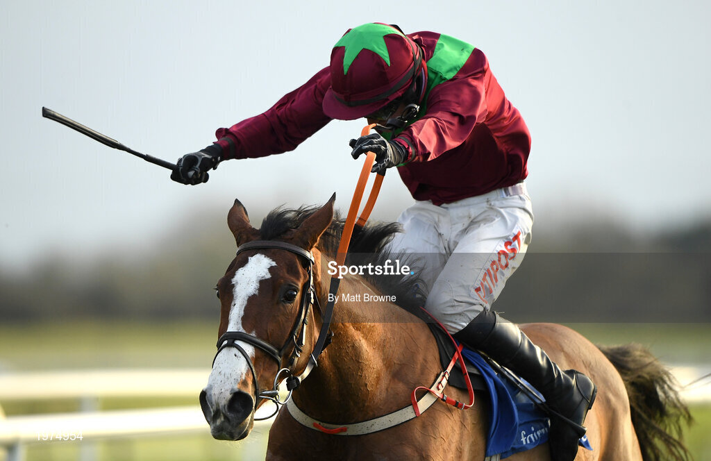 3 January 2021; Agusta Gold, with Danny Mullins up, on their way to winning the John & Chich Fowler Memorial EBF Mares Steeplechase after jumping the last at Fairyhouse Racecourse in Ratoath, Meath. Photo by Matt Browne/Sportsfile