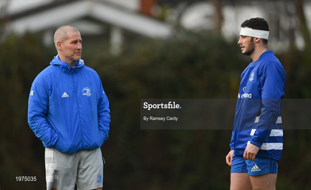 4 January 2021; Senior Coach Stuart Lancaster, left, in conversation with Andrew Smith during Leinster Rugby squad training at UCD in Dublin. Photo by Ramsey Cardy/Sportsfile