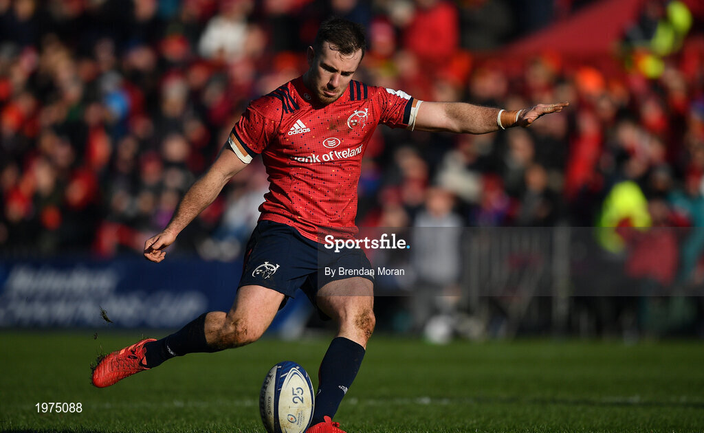 19 January 2020; JJ Hanrahan of Munster during the Heineken Champions Cup Pool 4 Round 6 match between Munster and Ospreys at Thomond Park in Limerick. Photo by Brendan Moran/Sportsfile