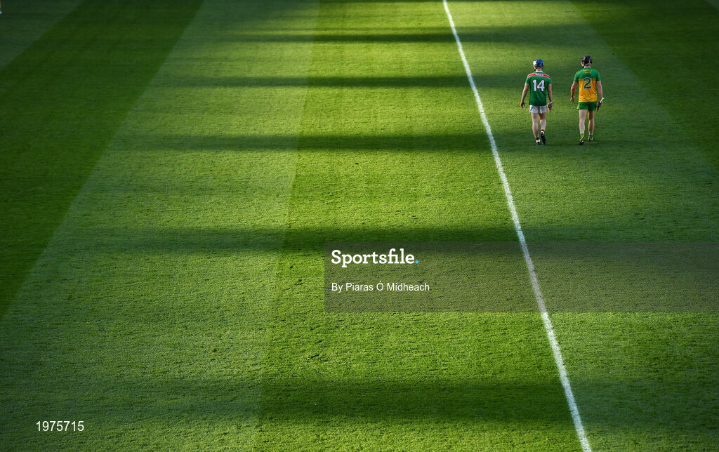 22 November 2020; Brian Morley of Mayo and Mark Callaghan of Donegal during the Nickey Rackard Cup Final match between Donegal and Mayo at Croke Park in Dublin. Photo by Piaras Ó Mídheach/Sportsfile