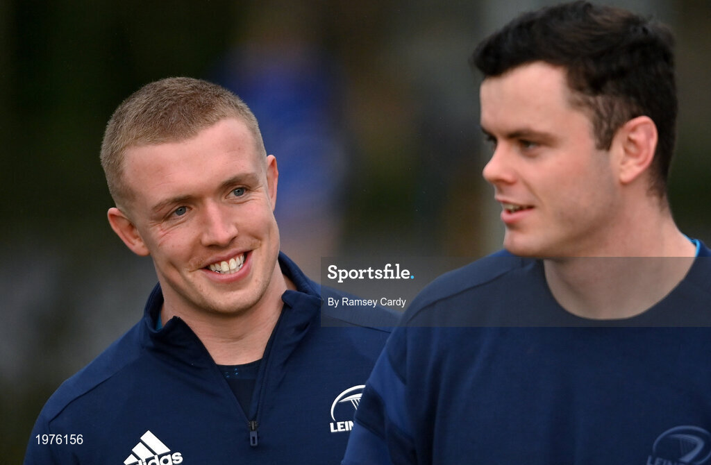 18 January 2021; Dan Leavy, left, and James Ryan during Leinster Rugby squad training at UCD in Dublin. Photo by Ramsey Cardy/Sportsfile