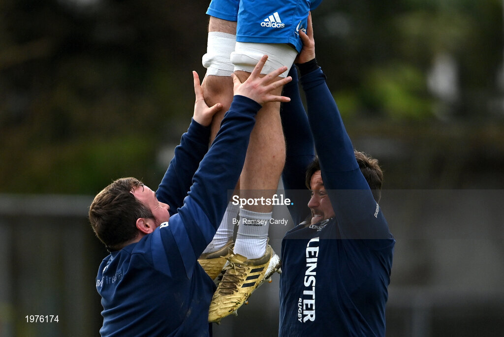 18 January 2021; Ed Byrne, left, and Andrew Porter during Leinster Rugby squad training at UCD in Dublin. Photo by Ramsey Cardy/Sportsfile