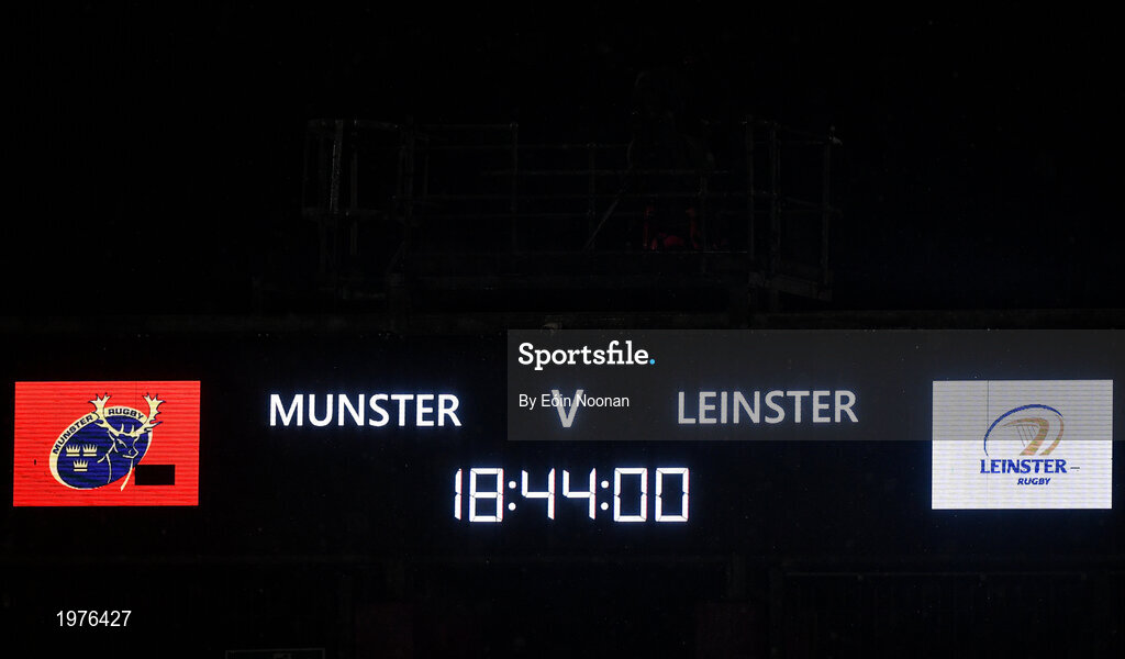 23 January 2021; A general view of the scoreboard prior to the Guinness PRO14 match between Munster and Leinster at Thomond Park in Limerick. Photo by Eóin Noonan/Sportsfile