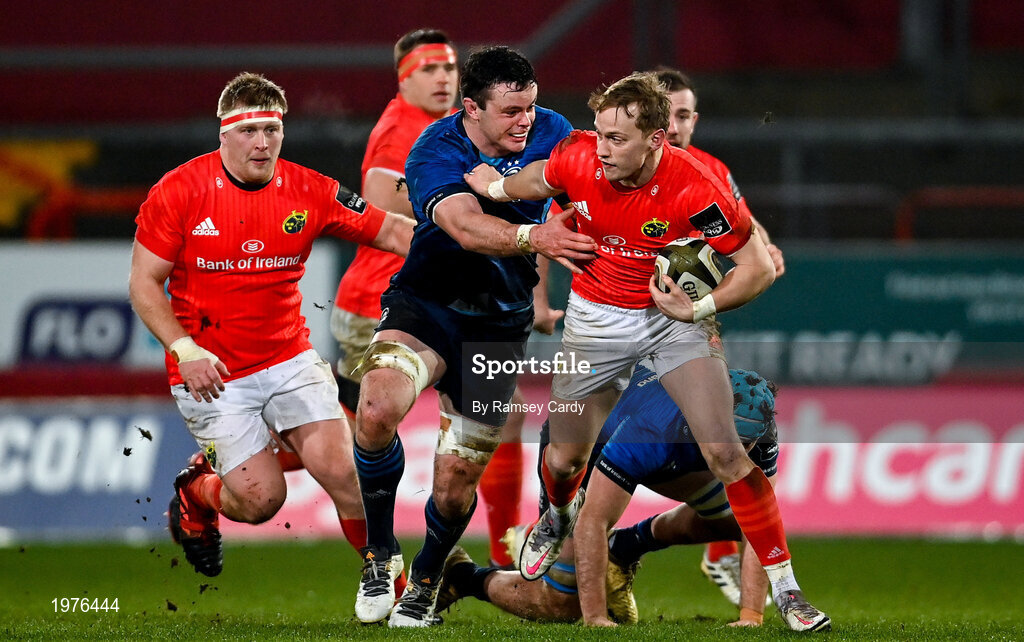 23 January 2021; Mike Haley of Munster is tackled by James Ryan of Leinster during the Guinness PRO14 match between Munster and Leinster at Thomond Park in Limerick. Photo by Ramsey Cardy/Sportsfile