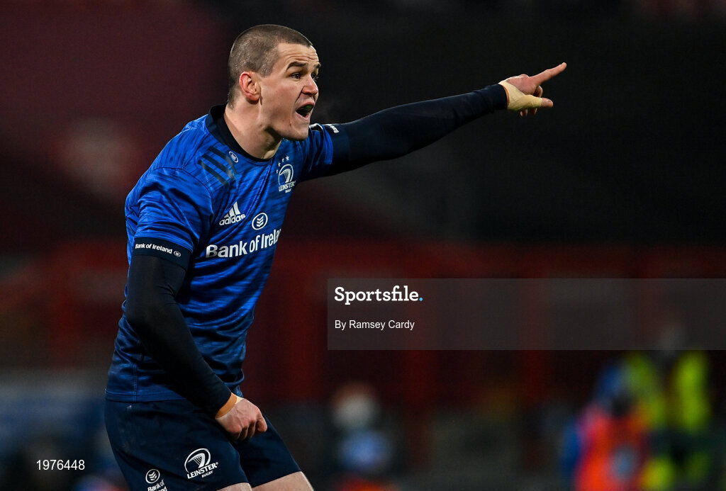23 January 2021; Jonathan Sexton of Leinster during the Guinness PRO14 match between Munster and Leinster at Thomond Park in Limerick. Photo by Ramsey Cardy/Sportsfile