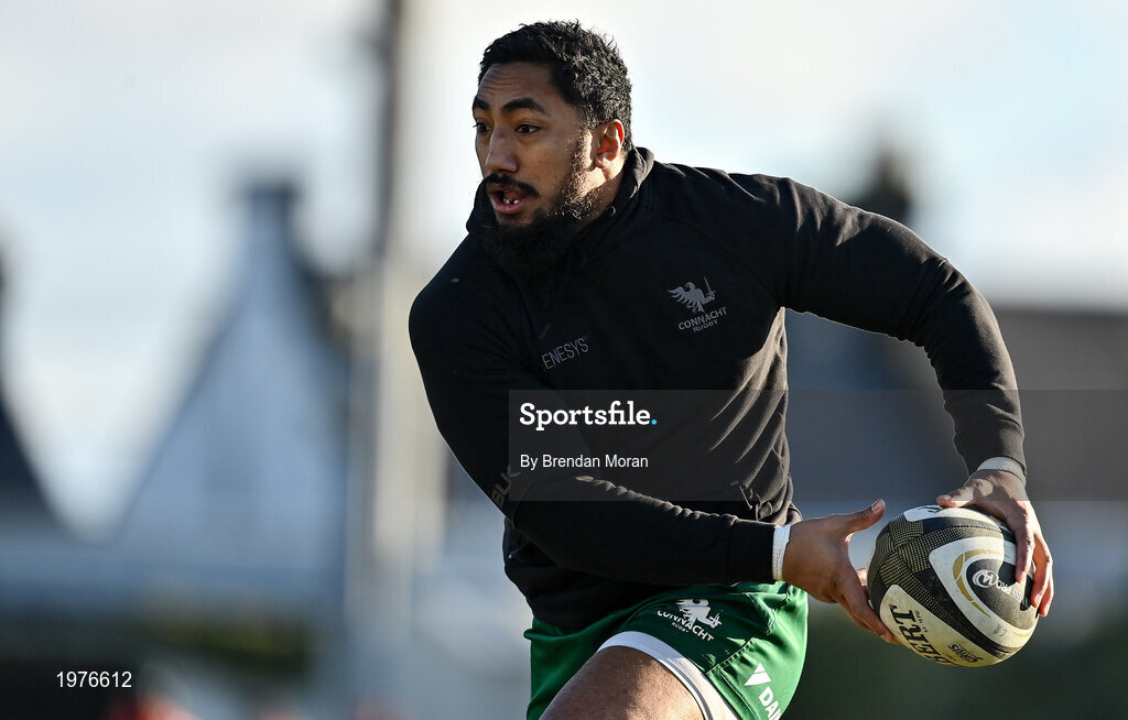 24 January 2021; Bundee Aki of Connacht warms up prior to the Guinness PRO14 match between Connacht and Ospreys at The Sportsground in Galway. Photo by Brendan Moran/Sportsfile