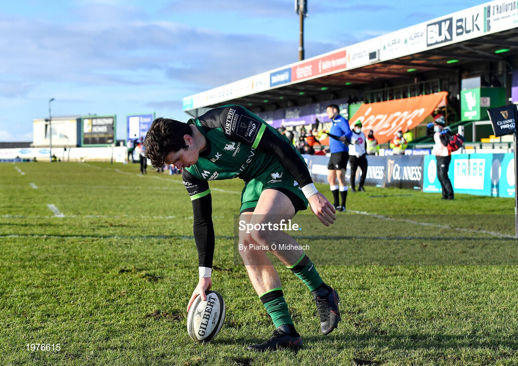 24 January 2021; Alex Wootton of Connacht scores a first half try, which was subsequently disallowed, during the Guinness PRO14 match between Connacht and Ospreys at The Sportsground in Galway. Photo by Piaras Ó Mídheach/Sportsfile