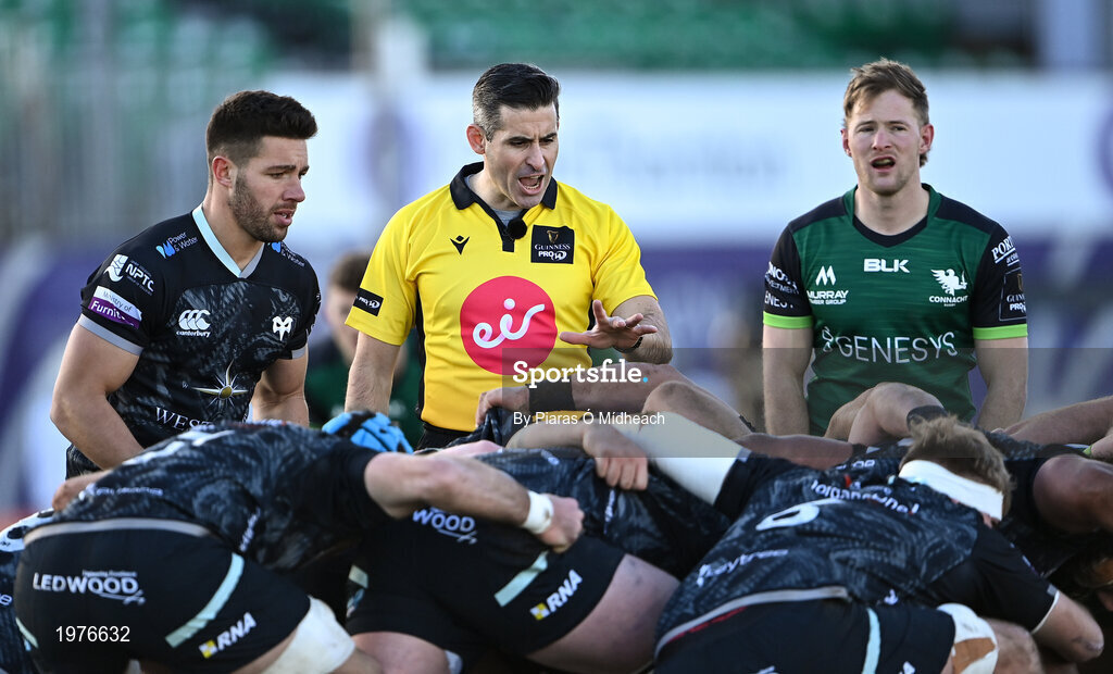 24 January 2021; Referee Frank Murphy during the Guinness PRO14 match between Connacht and Ospreys at The Sportsground in Galway. Photo by Piaras Ó Mídheach/Sportsfile