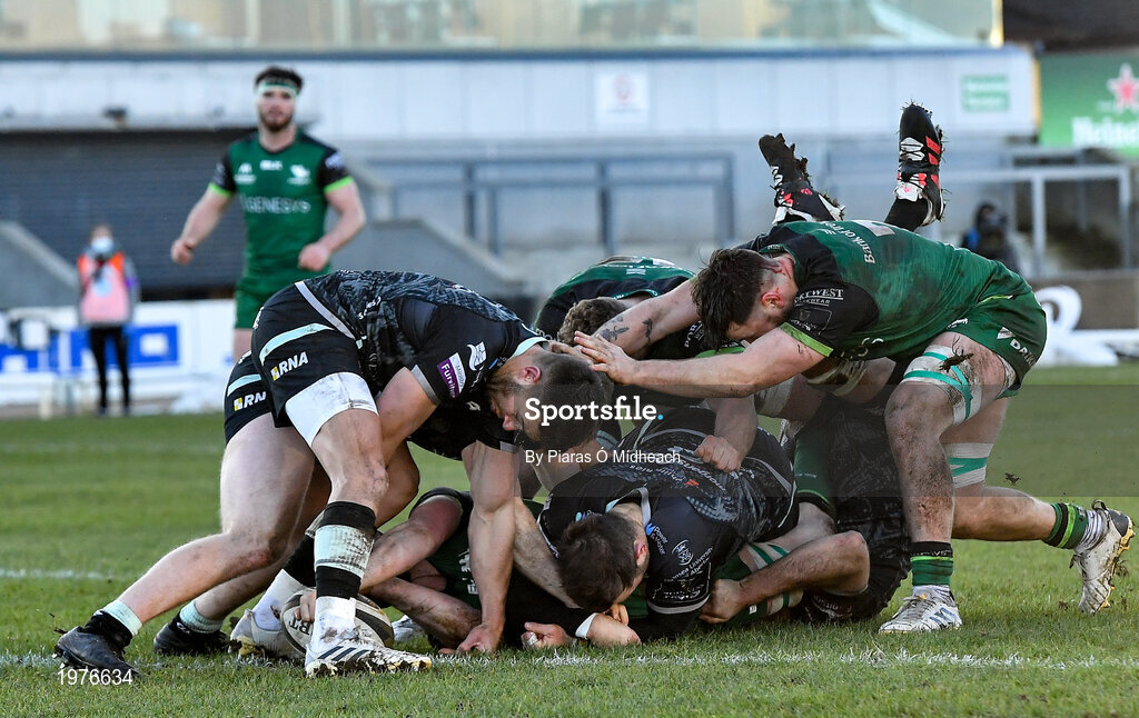 24 January 2021; Paul Boyle of Connacht grounds the ball to scores his side's second try during the Guinness PRO14 match between Connacht and Ospreys at The Sportsground in Galway. Photo by Piaras Ó Mídheach/Sportsfile