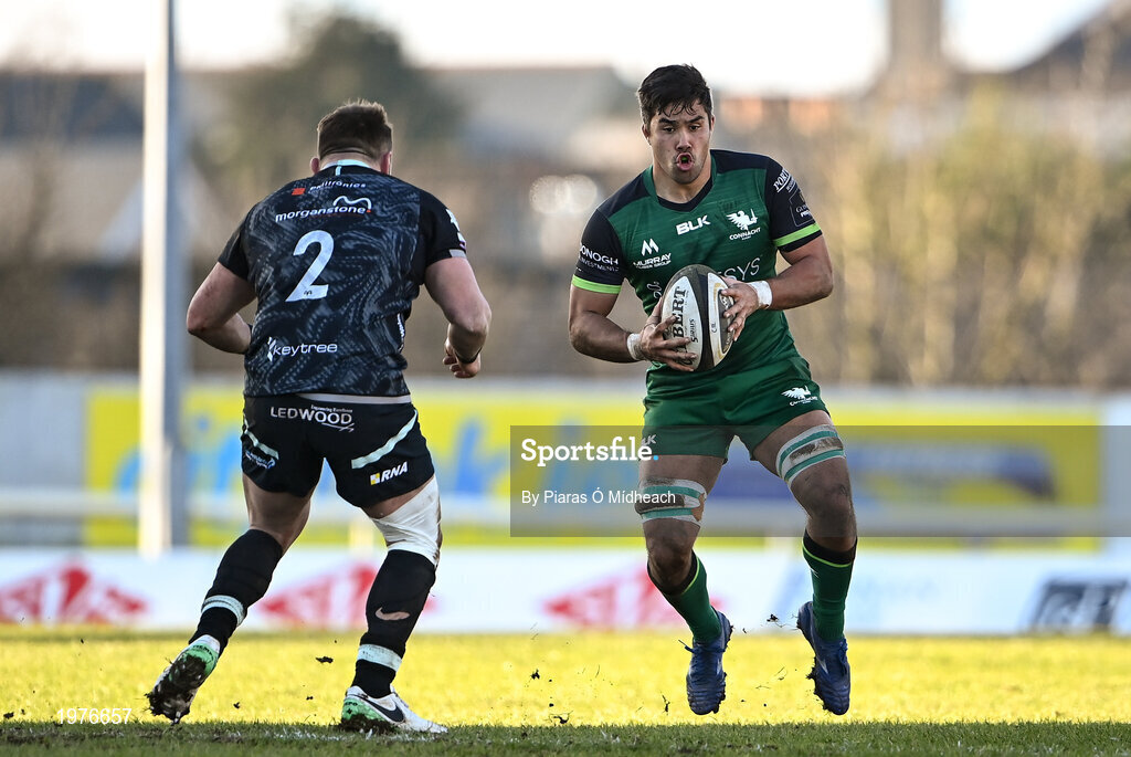 24 January 2021; Jarrad Butler of Connacht in action against Sam Parry of Ospreys during the Guinness PRO14 match between Connacht and Ospreys at The Sportsground in Galway. Photo by Piaras Ó Mídheach/Sportsfile