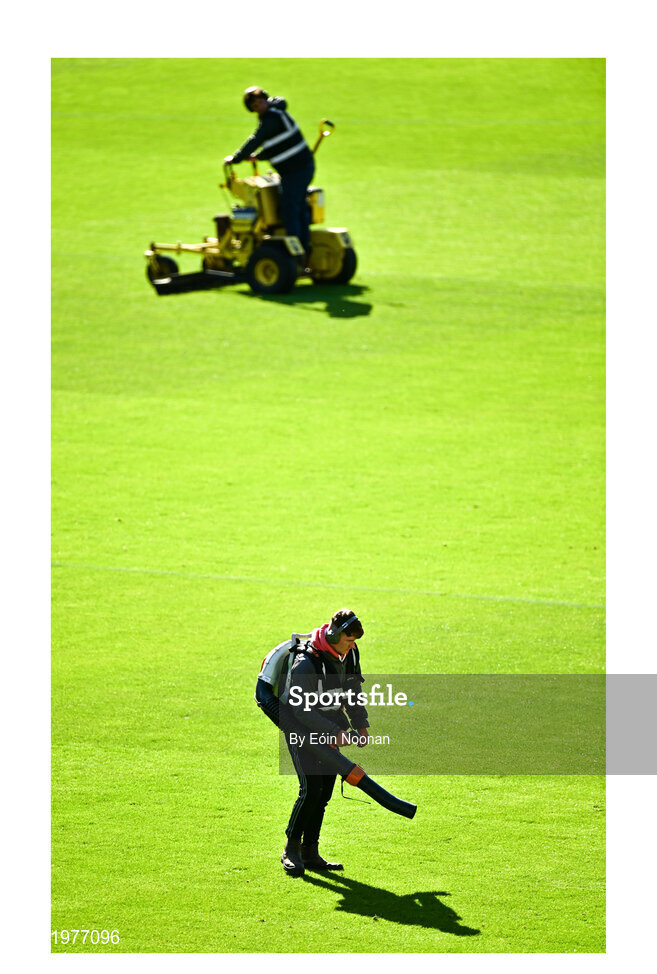 26 September 2020; September light. Páirc Uí Chaoimh has a long-shadow, autumnal feel in one part of the stadium but a sunny, summer aspect out on the pitch. Previously one of the most talked about playing surfaces, the pitch was in pristine condition when activity resumed - a tribute to the expertise of the groundsmen. Photo by Eóin Noonan/Sportsfile This image may be reproduced free of charge when used in conjunction with a review of the book "A Season of Sundays 2020". All other usage © Sportsfile