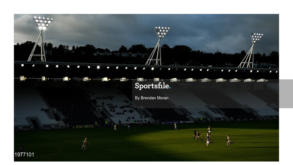 1 August 2020; Lights, camera, action – all that’s missing is a big attendance. The effect of crowd restrictions at sporting events can be seen vividly in this shot from Páirc Uí Chaoimh where only a handful of spectators witness Billy Hennessy of St Finbarr’s charging towards goal. Photo by Brendan Moran/Sportsfile This image may be reproduced free of charge when used in conjunction with a review of the book "A Season of Sundays 2020". All other usage © Sportsfile