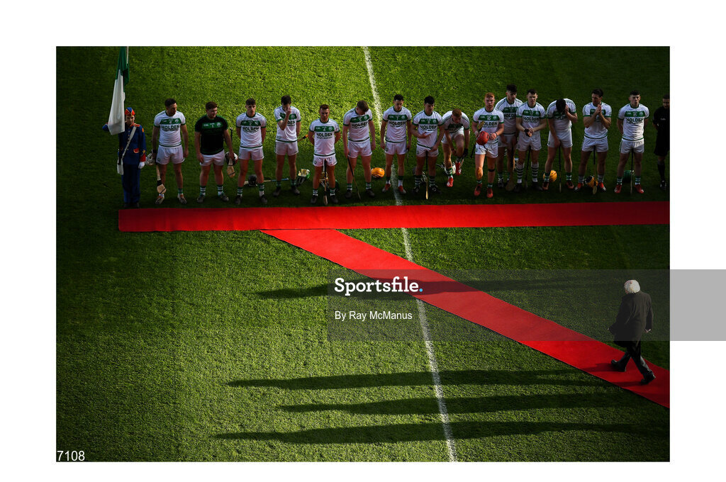19 January 2020; Almost two months earlier than usual, the President of Ireland, Michael D Higgins, takes to the red carpet to meet the hurlers of Ballyhale Shamrocks. The decision to move the club finals from their traditional St Patrick’s Day slot can, in hindsight, be deemed quite prescient as at least two major competitions are completed on schedule this year. Photo by Ray McManus/Sportsfile This image may be reproduced free of charge when used in conjunction with a review of the book "A Season of Sundays 2020". All other usage © Sportsfile
