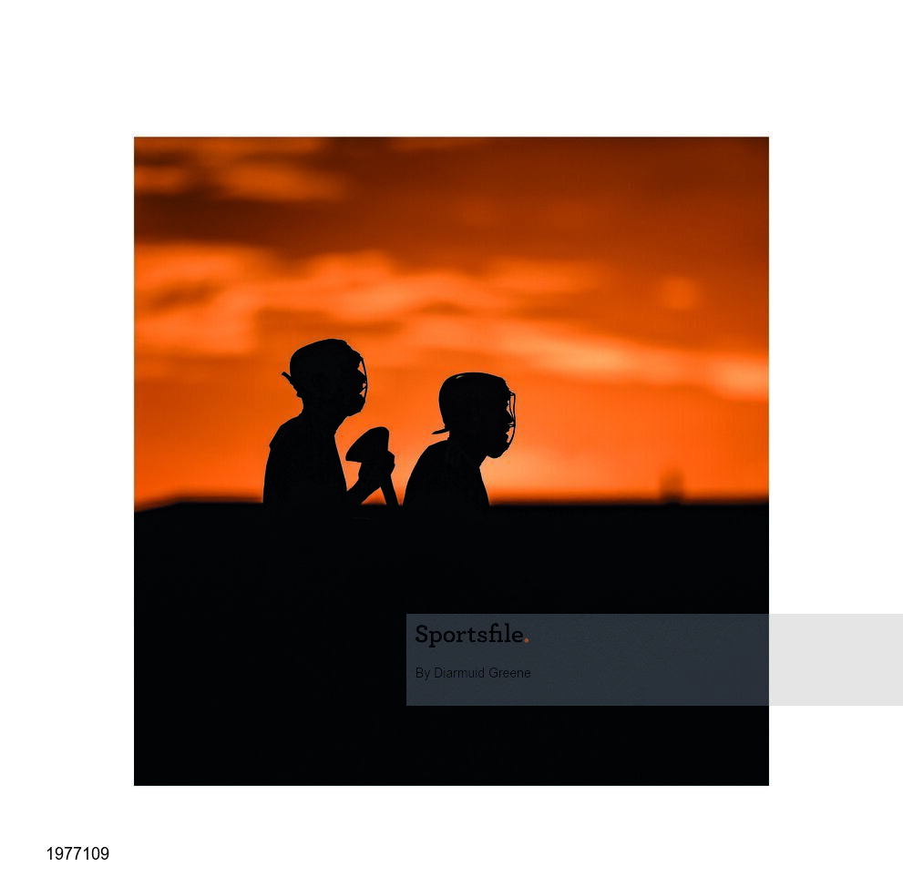 18 January 2020; Stepping out of the shadows. The silhouetted figures of Wexford defender Joe O’Connor and Jarlath Mannion of Galway highlight a beautiful winter sunset in Portlaoise during the Walsh Cup final Photo by Diarmuid Greene/Sportsfile This image may be reproduced free of charge when used in conjunction with a review of the book "A Season of Sundays 2020". All other usage © Sportsfile