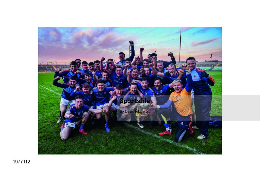 18 January 2020; Silverware is good for the psyche. Longford’s first success in the O’Byrne Cup tournament since 2000 is celebrated wildly by their players, including Paddy Fox, Andrew Farrell, Kevin Diffley and goalkeeper Paddy Collum Photo by David Fitzgerald/Sportsfile This image may be reproduced free of charge when used in conjunction with a review of the book "A Season of Sundays 2020". All other usage © Sportsfile
