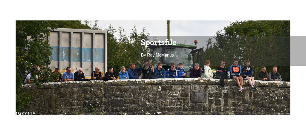 30 August 2020; A bridge of spies. These aren’t curious passers-by leaning over Dollardstown railway bridge in Seneschalstown but real GAA fans starved of live football, all avidly following the action in Fr Tully Park between Skryne and Nobber. Even the driver of the tractor has slowed down to see how the game is going. Photo by Ray McManus/Sportsfile This image may be reproduced free of charge when used in conjunction with a review of the book "A Season of Sundays 2020". All other usage © Sportsfile