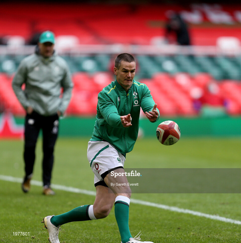 7 February 2021; Jonathan Sexton of Ireland warms up prior to the Guinness Six Nations Rugby Championship match between Wales and Ireland at the Principality Stadium in Cardiff, Wales. Photo by Gareth Everett/Sportsfile