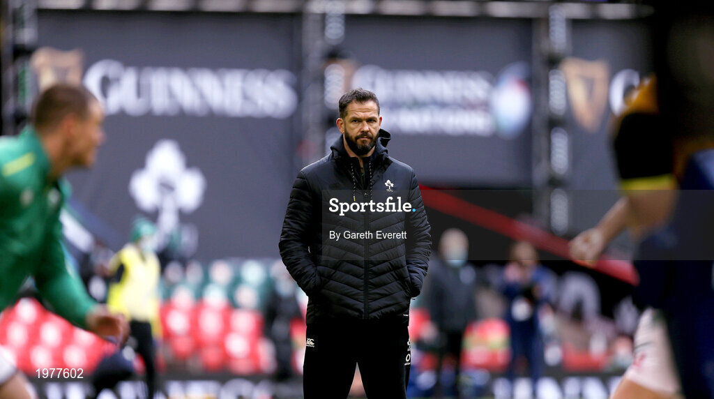 7 February 2021; Ireland head coach Andy Farrell prior to the Guinness Six Nations Rugby Championship match between Wales and Ireland at the Principality Stadium in Cardiff, Wales. Photo by Gareth Everett/Sportsfile