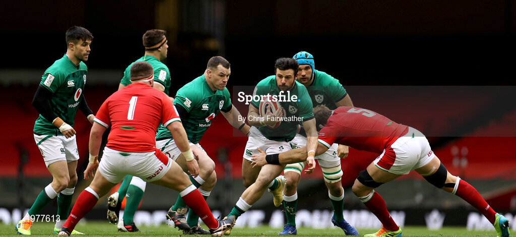 7 February 2021; Robbie Henshaw of Ireland is tackled by Alun Wyn Jones of Wales during the Guinness Six Nations Rugby Championship match between Wales and Ireland at the Principality Stadium in Cardiff, Wales. Photo by Chris Fairweather/Sportsfile