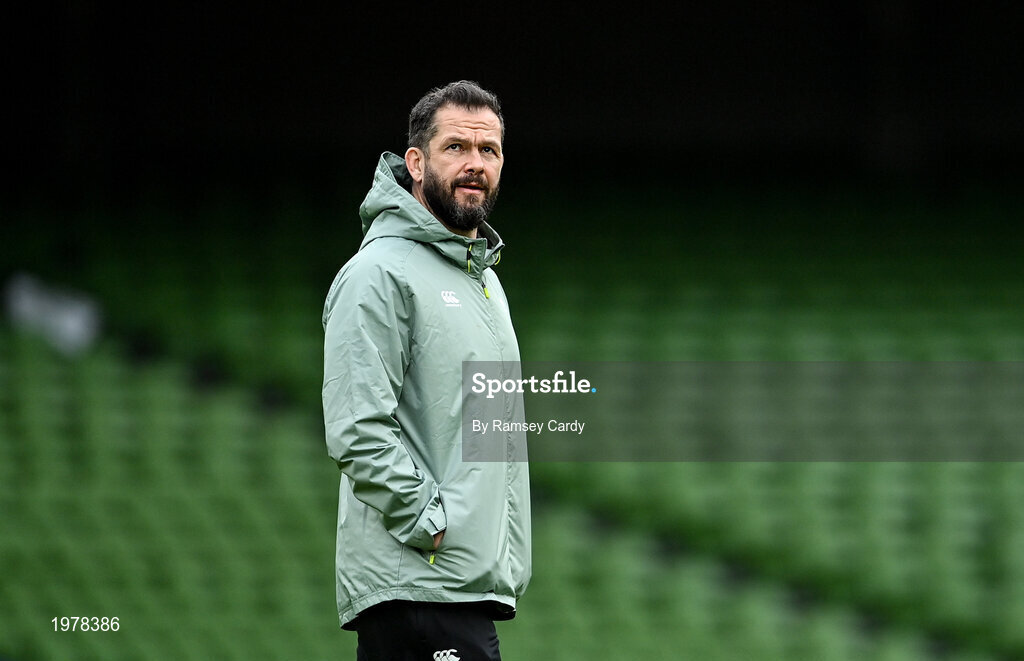 14 February 2021; Ireland head coach Andy Farrell prior to the Guinness Six Nations Rugby Championship match between Ireland and France at the Aviva Stadium in Dublin. Photo by Ramsey Cardy/Sportsfile
