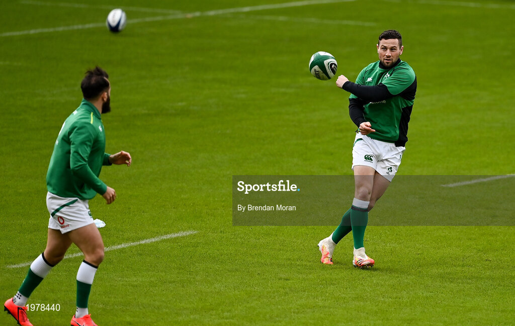 14 February 2021; John Cooney, right, passes to team-mate Jamison Gibson-Park prior to the Guinness Six Nations Rugby Championship match between Ireland and France at the Aviva Stadium in Dublin. Photo by Brendan Moran/Sportsfile
