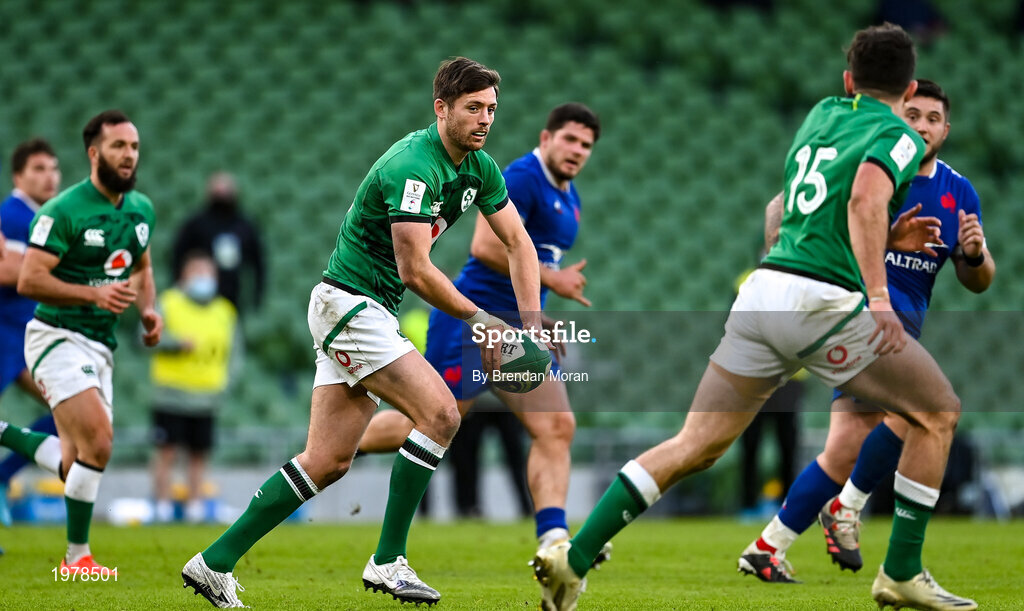 14 February 2021; Ross Byrne of Ireland during the Guinness Six Nations Rugby Championship match between Ireland and France at the Aviva Stadium in Dublin. Photo by Brendan Moran/Sportsfile