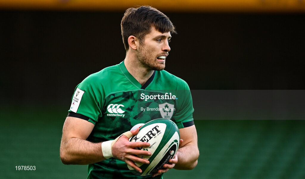 14 February 2021; Ross Byrne of Ireland during the Guinness Six Nations Rugby Championship match between Ireland and France at the Aviva Stadium in Dublin. Photo by Brendan Moran/Sportsfile
