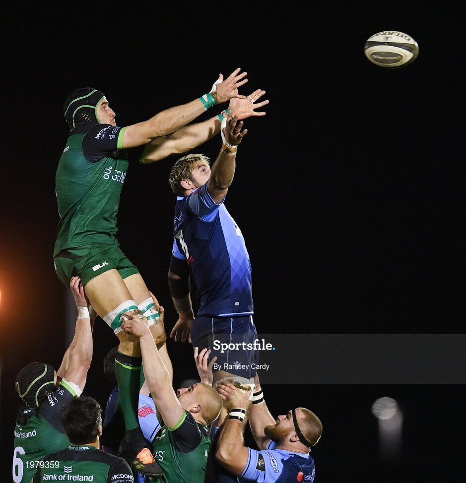 20 February 2021; Ultan Dillane of Connacht and Josh Turnbull of Cardiff Blues compete for possession in a line-out during the Guinness PRO14 match between Connacht and Cardiff Blues at The Sportsground in Galway. Photo by Ramsey Cardy/Sportsfile