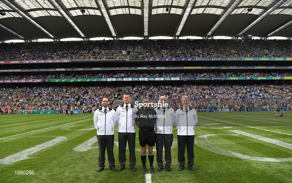 1 September 2019; Referee David Gough and his umpires before the GAA Football All-Ireland Senior Championship Final match between Dublin and Kerry at Croke Park in Dublin.