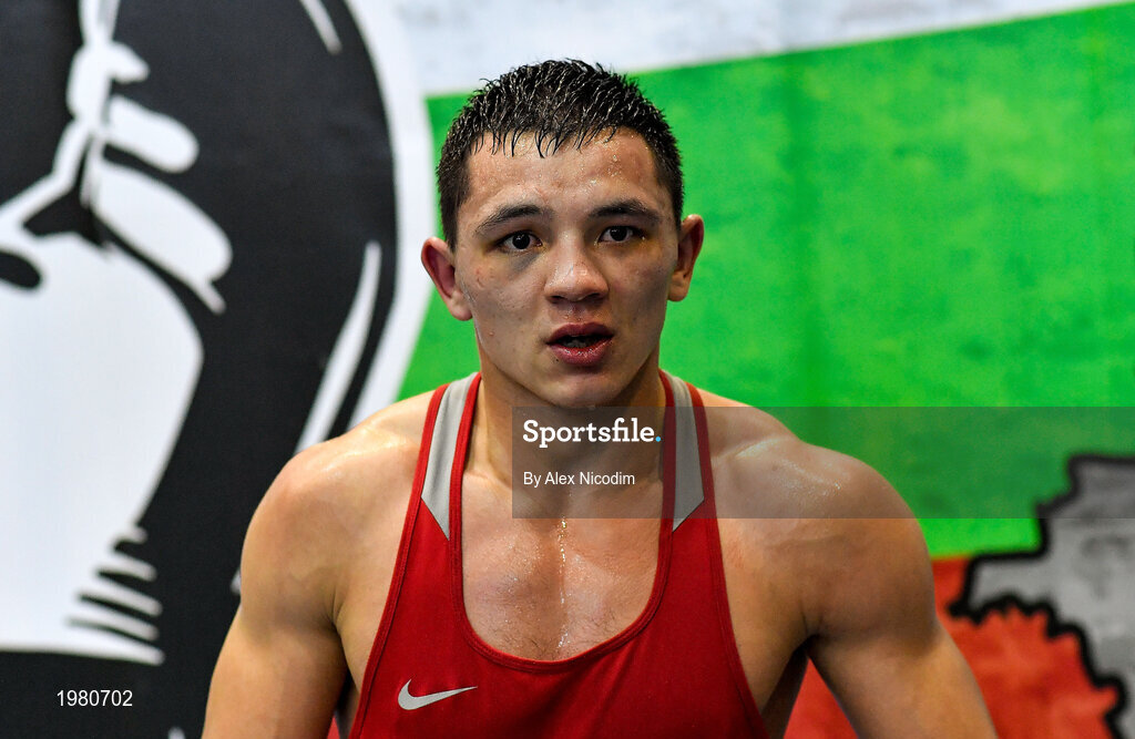 26 February 2021; Pavel Sosulin of Russia following victory over Nurkanat Raiys of Kazakhstan during their men's middleweight 75kg semi-final bout at the AIBA Strandja Memorial Boxing Tournament in Sofia, Bulgaria. Photo by Alex Nicodim/Sportsfile
