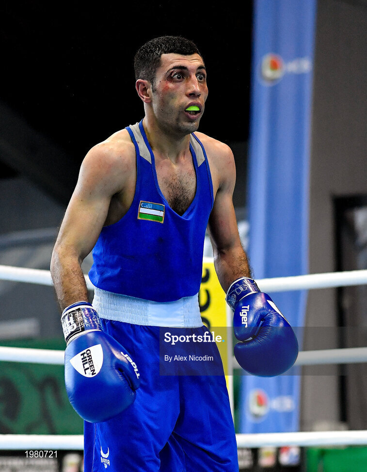 26 February 2021; Shakhobidin Zoirov of Uzbekistan during his men's flyweight 52kg semi-final bout against Deepak Komar of India at the AIBA Strandja Memorial Boxing Tournament in Sofia, Bulgaria. Photo by Alex Nicodim/Sportsfile
