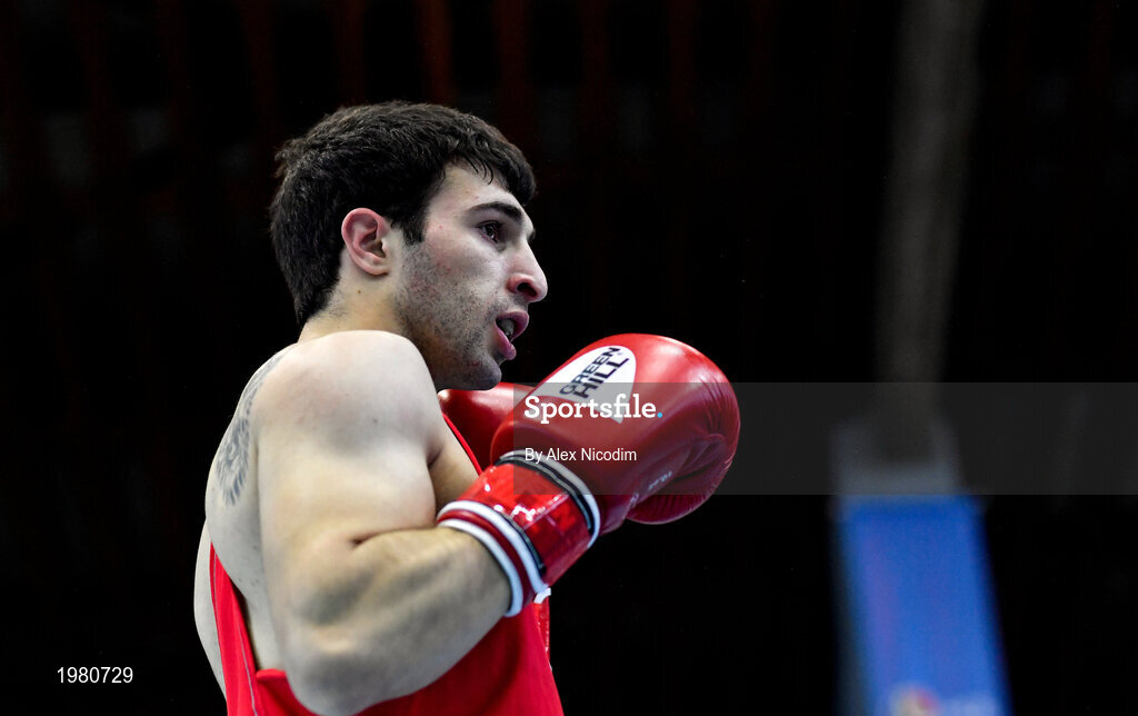 26 February 2021; Benik Nikoghosyan of Armenia during his men's lightweight 63kg semi-final bout against Ilia Popov of Russia at the AIBA Strandja Memorial Boxing Tournament in Sofia, Bulgaria. Photo by Alex Nicodim/Sportsfile