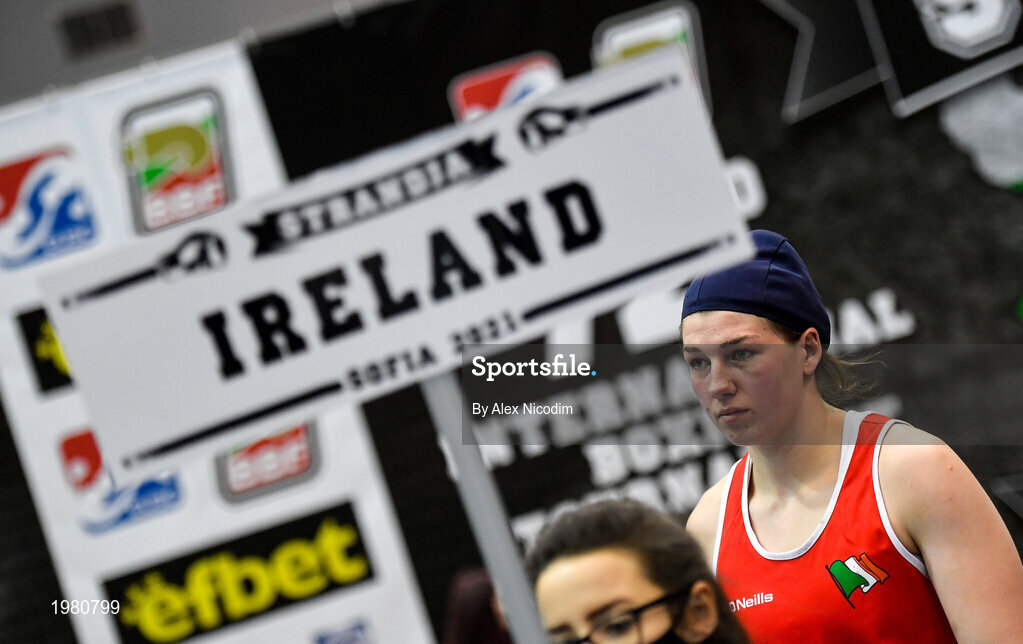 26 February 2021; Aoife O'Rourke of Ireland after being defeated by Naomi Graham of United States in their women's middleweight 75kg semi-final bout at the AIBA Strandja Memorial Boxing Tournament in Sofia, Bulgaria. Photo by Alex Nicodim/Sportsfile