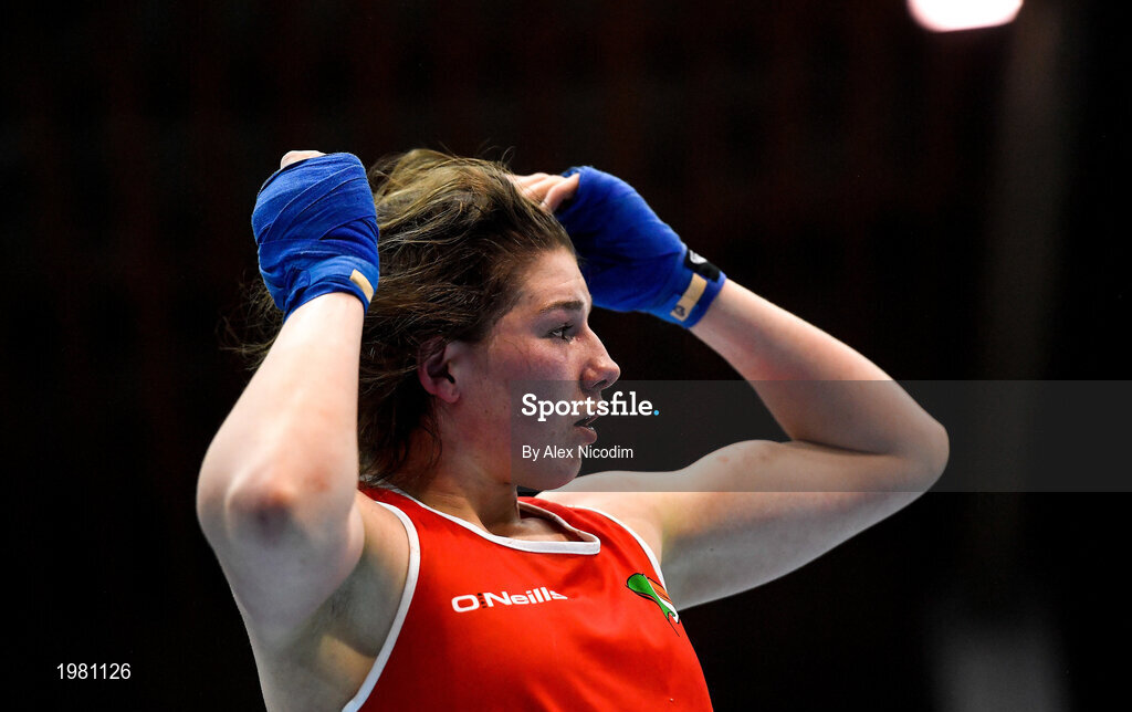 26 February 2021; Aoife O'Rourke of Ireland after being defeated by Naomi Graham of United States in their women's middleweight 75kg semi-final bout at the AIBA Strandja Memorial Boxing Tournament in Sofia, Bulgaria. Photo by Alex Nicodim/Sportsfile