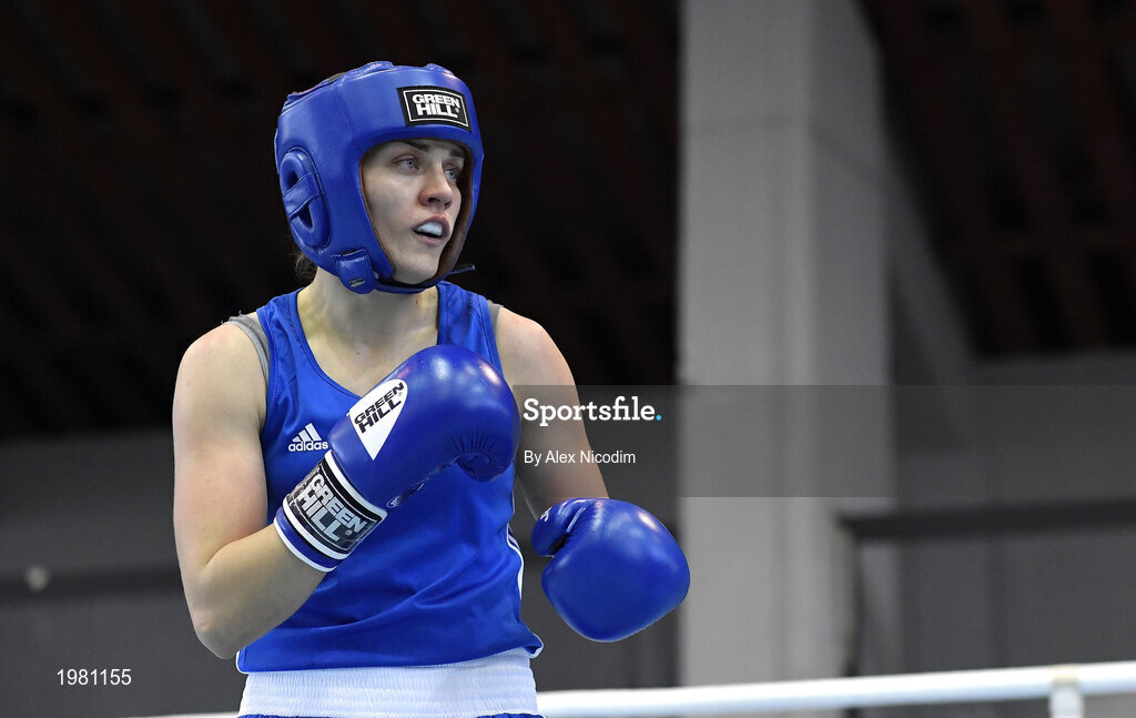 26 February 2021; Navbakhor Khamidova of Uzbekistan during her Women's Welterweight 69kg semi-final bout against Anna Lysenko of Ukriane at the AIBA Strandja Memorial Boxing Tournament in Sofia, Bulgaria. Photo by Alex Nicodim/Sportsfile