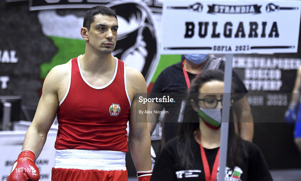 26 February 2021; Petar Belberov of Bulgaria makes his way to the ring for his men's Super heavyweight +91kg semi-final bout against Tsotne Rogava of Ukraine at the AIBA Strandja Memorial Boxing Tournament in Sofia, Bulgaria. Photo by Alex Nicodim/Sportsfile
