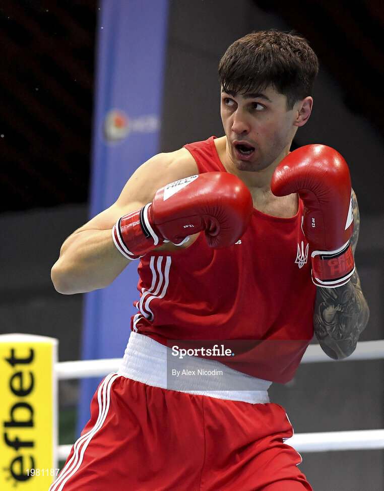 26 February 2021; Maxym Kots of Ukraine during his men's light heavyweight 81kg semi-final bout against Dilshodbek Ruzmetov of Uzbekistan at the AIBA Strandja Memorial Boxing Tournament in Sofia, Bulgaria. Photo by Alex Nicodim/Sportsfile