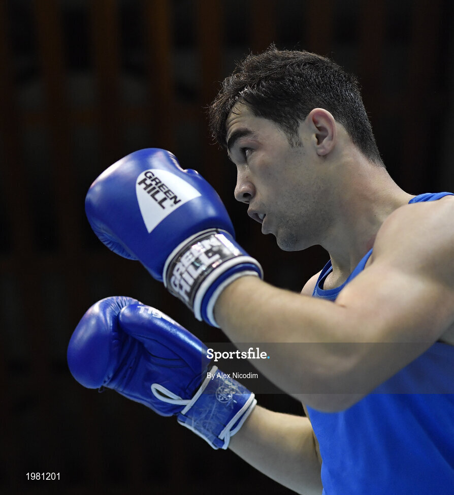 26 February 2021; Dilshodbek Ruzmetov of Uzbekistan during his men's light heavyweight 81kg semi-final bout against Maxym Kots of Ukraine at the AIBA Strandja Memorial Boxing Tournament in Sofia, Bulgaria. Photo by Alex Nicodim/Sportsfile