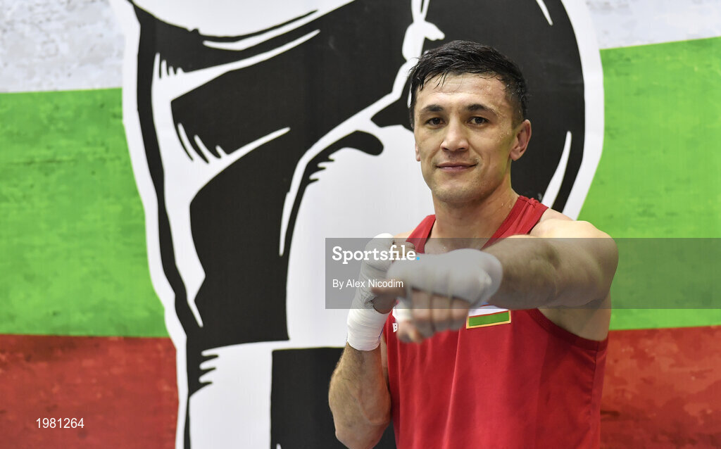 26 February 2021; Bobo-Usmon Baturov of Uzbekistan following his victory in the men's welterweight 69kg semi-final bout at the AIBA Strandja Memorial Boxing Tournament in Sofia, Bulgaria. Photo by Alex Nicodim/Sportsfile