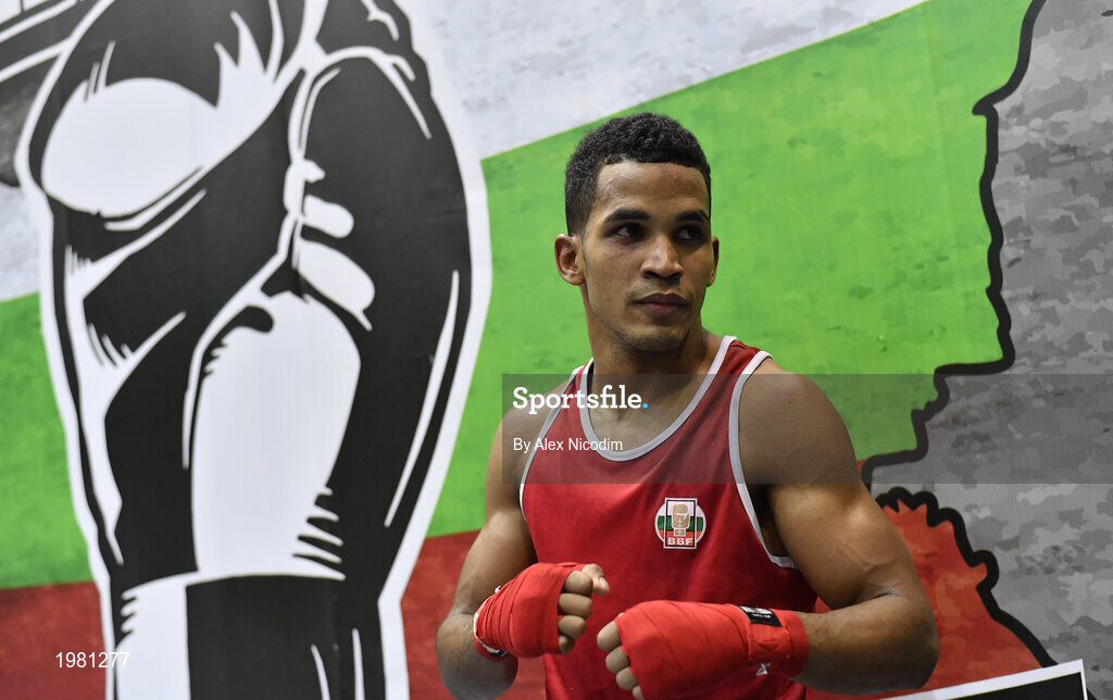26 February 2021; Havier Ibanes of Bulgaria following his victory in the men's Featherweight 57kg semi-final bout at the AIBA Strandja Memorial Boxing Tournament in Sofia, Bulgaria. Photo by Alex Nicodim/Sportsfile