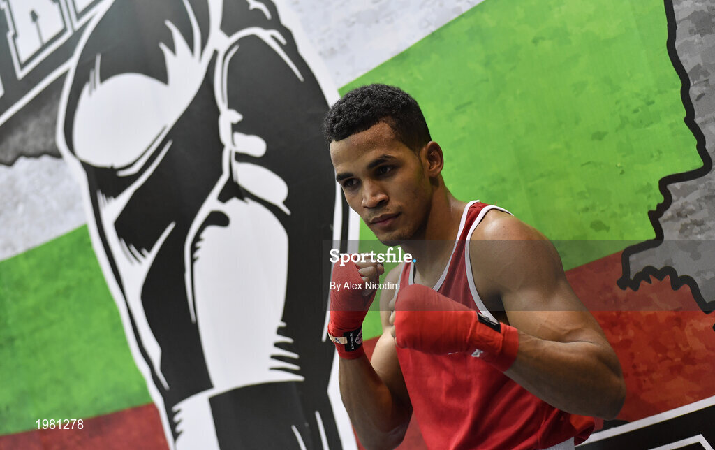 26 February 2021; Havier Ibanes of Bulgaria following his victory in the men's Featherweight 57kg semi-final bout at the AIBA Strandja Memorial Boxing Tournament in Sofia, Bulgaria. Photo by Alex Nicodim/Sportsfile
