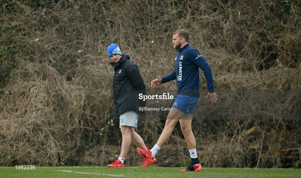 2 March 2021; Ross Molony and Senior Injury and Rehabilitation Coach Diarmaid Brennan during Leinster Rugby squad training at UCD in Dublin. Photo by Ramsey Cardy/Sportsfile