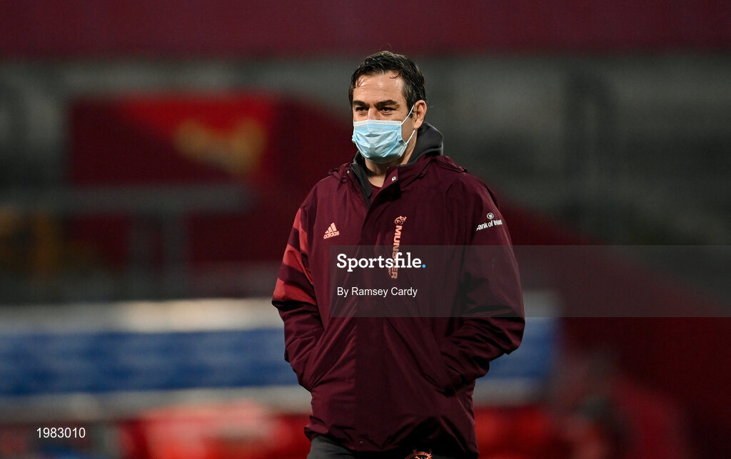 5 March 2021; Munster head coach Johann van Graan prior to the Guinness PRO14 match between Munster and Connacht at Thomond Park in Limerick. Photo by Ramsey Cardy/Sportsfile
