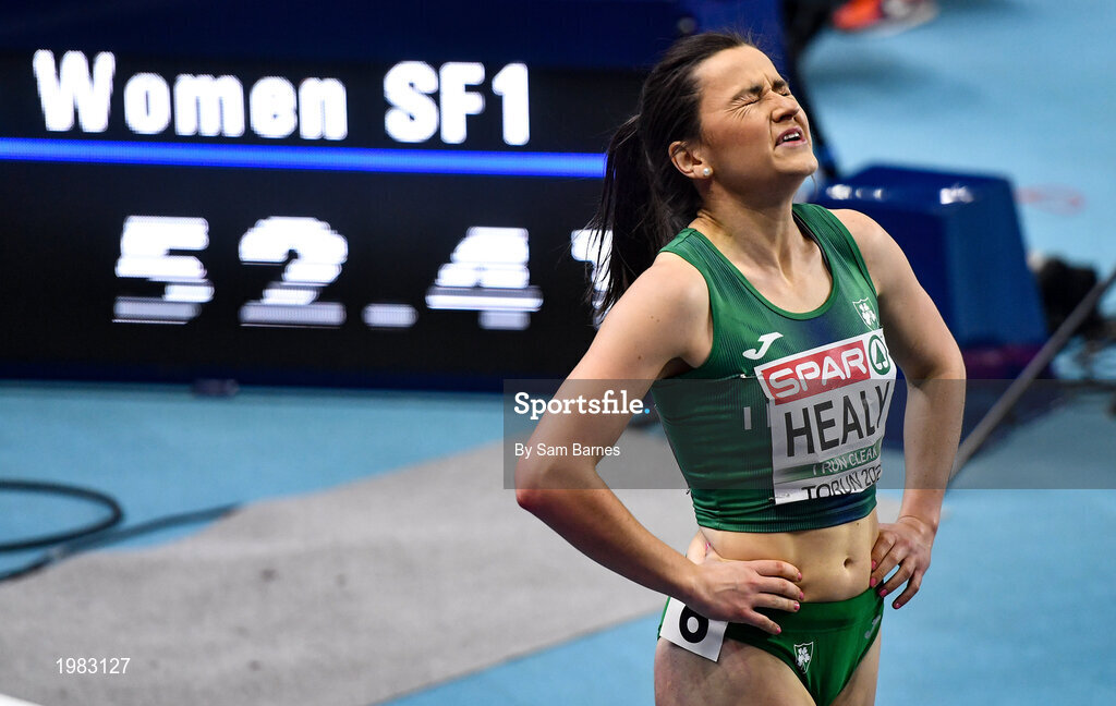 5 March 2021; Phil Healy of Ireland after winning her semi-final of the Women's 400m during the second session on day one of the European Indoor Athletics Championships at Arena Torun in Torun, Poland. Photo by Sam Barnes/Sportsfile