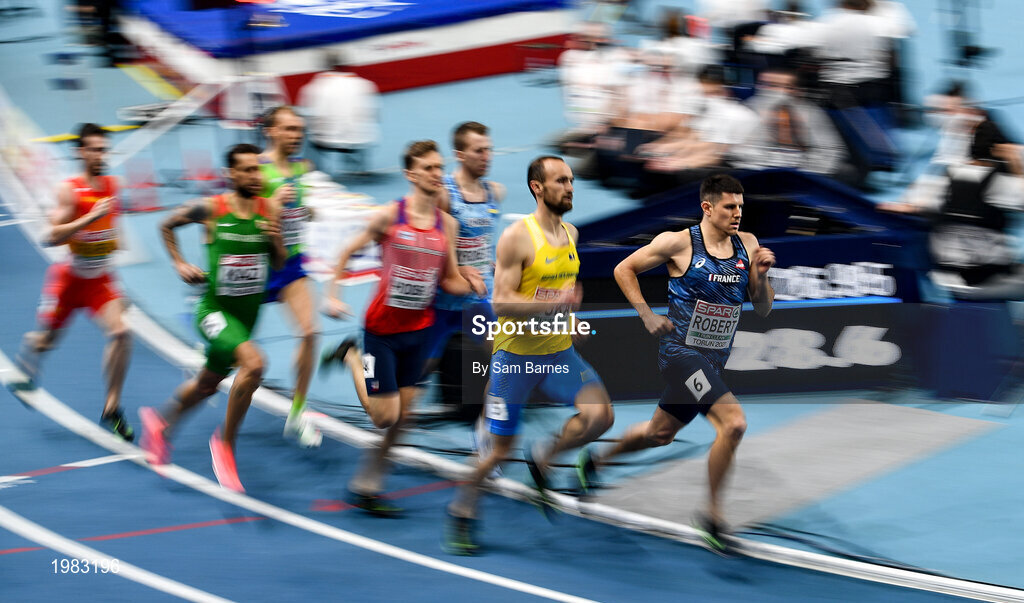 5 March 2021; Benjamin Robert of France leads the field in the Men's 800m qualifying round during the second session on day one of the European Indoor Athletics Championships at Arena Torun in Torun, Poland. Photo by Sam Barnes/Sportsfile